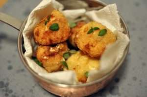 - Baka osten i ugnen tills den har börjat bubbla och fått färg i kanterna, ca 10 minuter. Osten ska inte få för mycket färg, då den kommer smaka bränt.